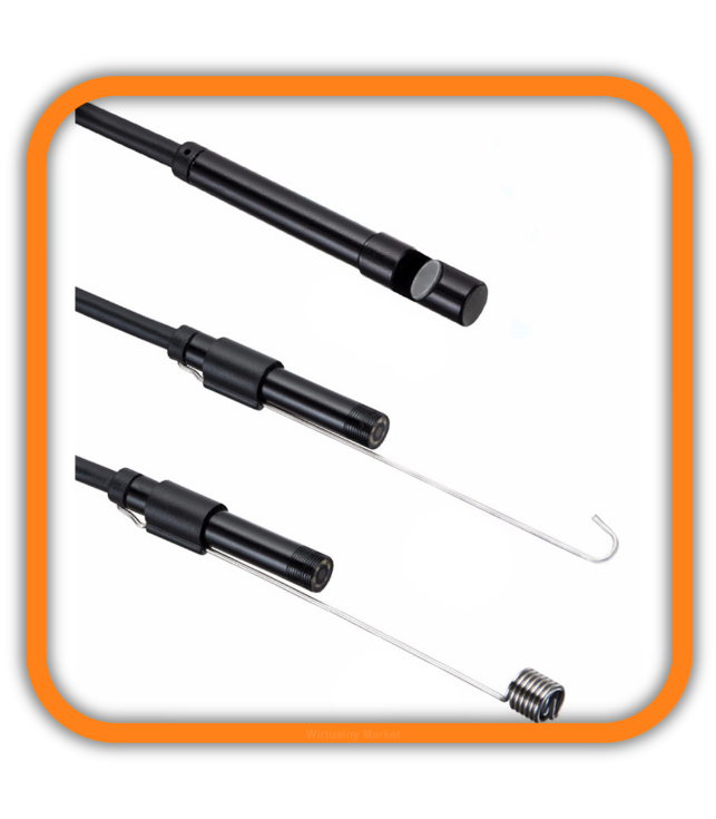 ➡️ W zestawie znajdują się trzy nakładki. Haczyk, lusterko i magnes. Dodatkowe elementy rozszerzą funkcjonalność kamery - magnes czy lusterko idealnie sprawdzą się w trudno dostępnych miejscach, jeżeli magnes nie wystarczy możemy posłużyć się nakrtętką w formie haczyka.