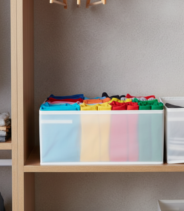 Organizer pozwala wygodnie posegregować bieliznę, skarpetki i drobne akcesoria. Dzięki niemu każda rzecz ma swoje miejsce, a szuflada zawsze pozostaje schludna.