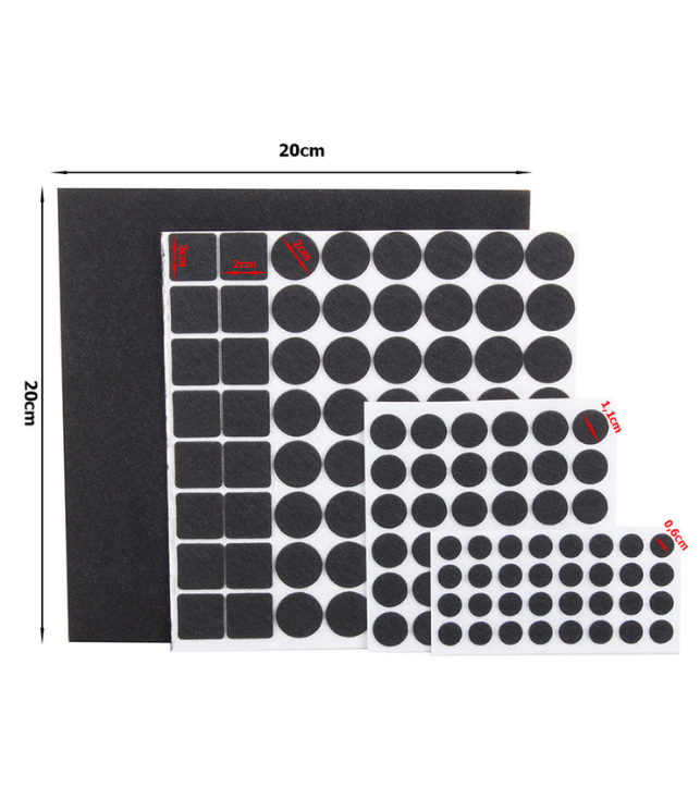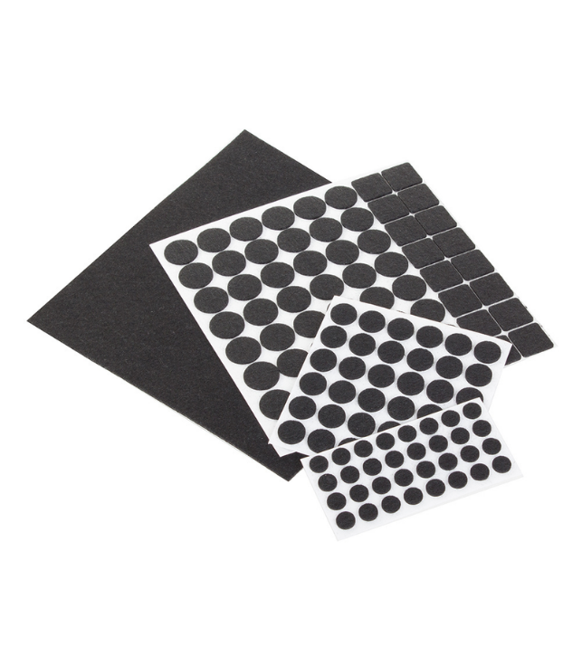 Komplet zawiera 133 samoprzylepne podkładki w różnych rozmiarach. Dzięki temu łatwo zabezpieczysz wszystkie meble w domu, od krzeseł po komody.
