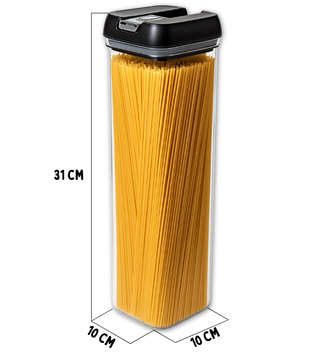 Pojemnik mieści aż 1,9 litra, co sprawia, że świetnie nadaje się do przechowywania makaronu, ryżu, płatków śniadaniowych czy innych produktów spożywczych w większej ilości.