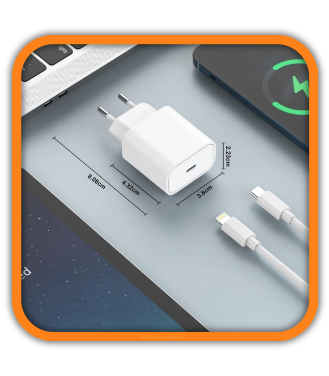 ⚡️ Zyskaj szybkie i bezpieczne ładowanie swojego iPhone’a! Komplet: kostka sieciowa 20W + kabel 1 metr USB-C do Lightning.